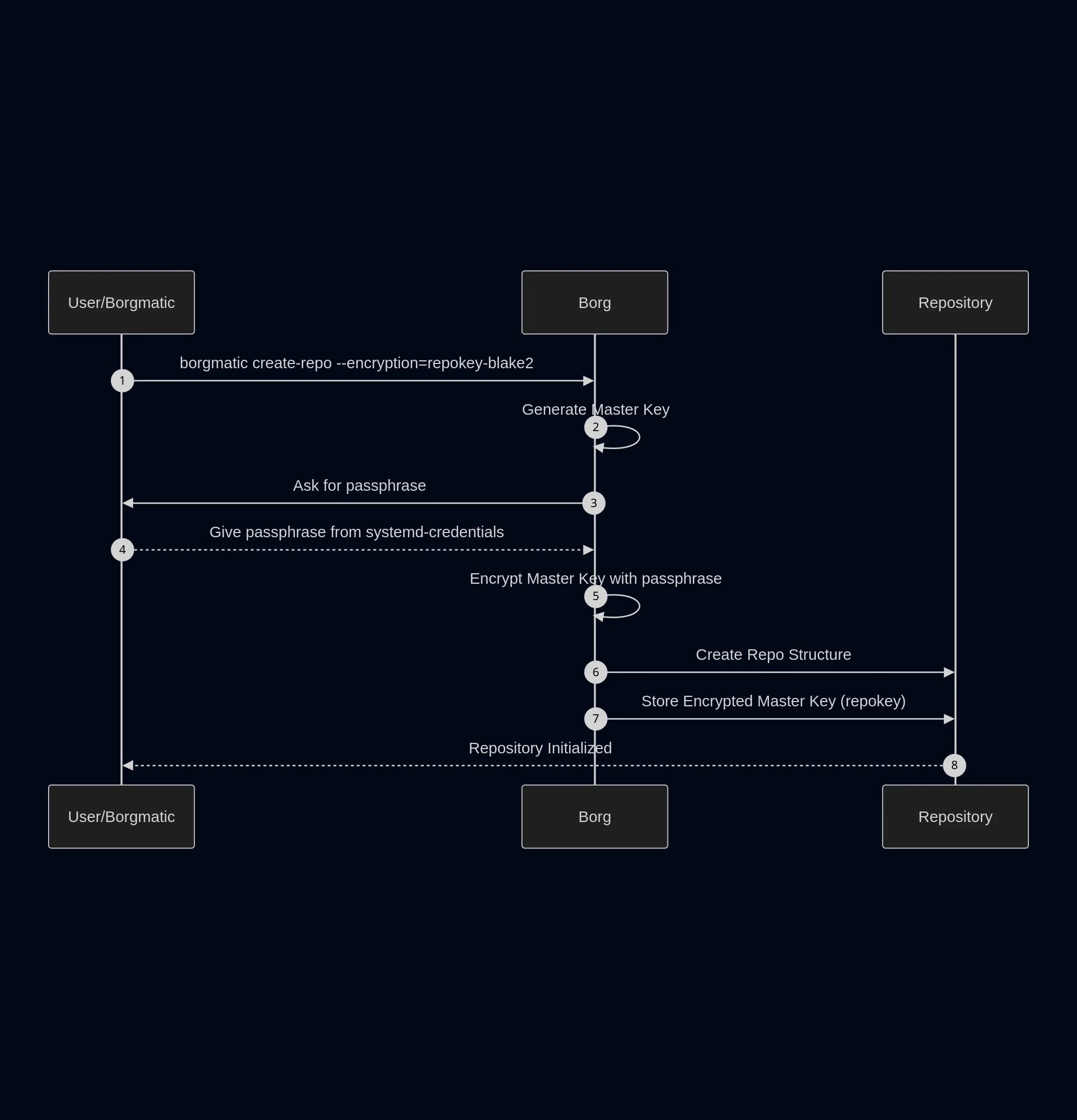 U->>B: borgmatic create-repo --encryption=repokey-blake2